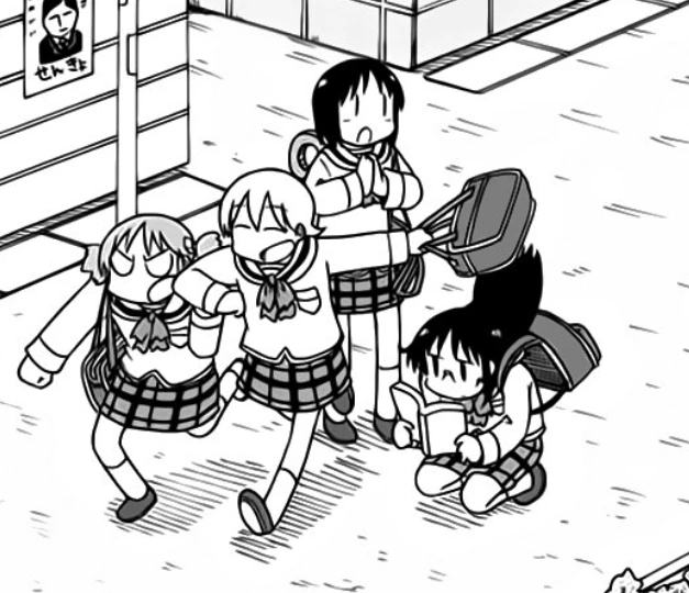 Nano junto a Mai Minakami, Yuuko Aioi y Mio Naganohara camino a la escuela en el manga