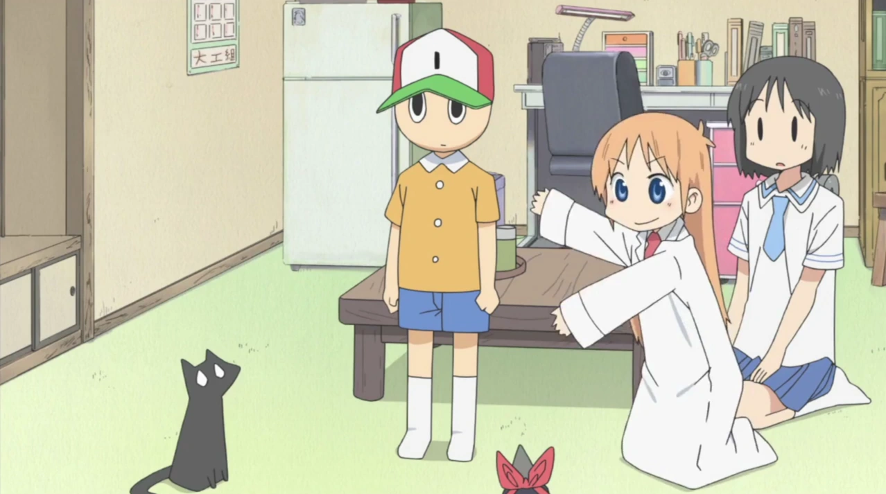 - In Nichijou opening 2, he is seen with Assistant Instructor at 0:59
