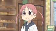 She meet Yukko on the train and guided her to Daiku Burger. She couldn't help but laugh at Yuuko's misfortune.