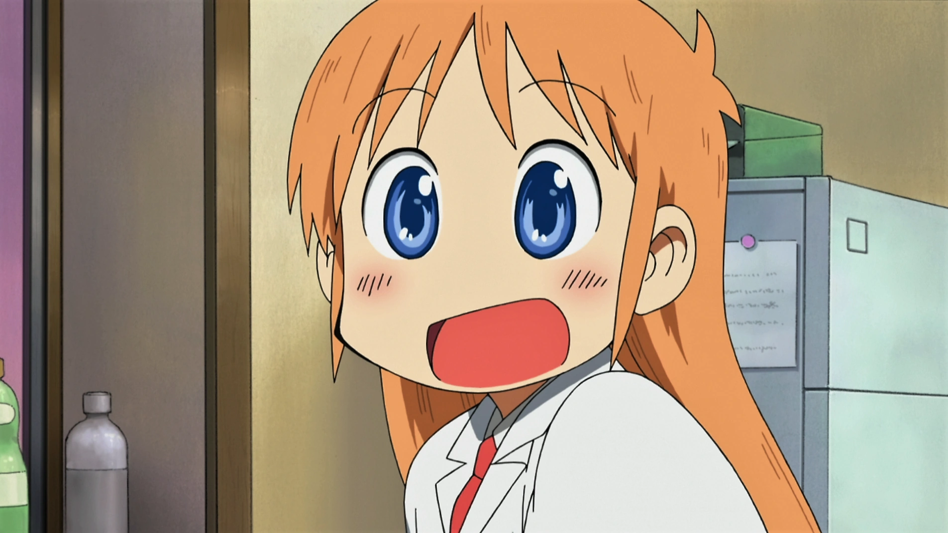 The class is dumbstruck. Nano panics again, trembling and worrying that she's freaked them out. She desperately tries to think of something else before declaring, "That was a lie!" The class does not find this reaffirming. We see the class staring at Nano as she agonizes over why she's changing her story. To make matters worse, her key starts cranking itself. Nano begins rambling about her key, saying that it's not like turning it will make her toe into a USB port like a robot or anything...[1] This does not assuage the class' bewilderment. Nano gives up, thinking to herself that it's hopeless as tears run down her face.