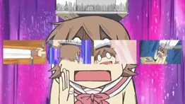 | Yuuko is hit on the head with her assignment book, from every camera angle possible. | |