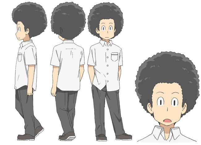 He has a black afro and similarly to Annaka-san, he is also told off by Sakurai-sensei, but pulls out a dorayaki from his afro, which troubles her. It is rumored that there are other things in there too...!? |