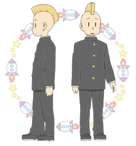 そのヘヤースタイルから、ワルそうなイメージを持つかもしれないが、性格はやさしく、科学者になるのが夢である。 そのため、科学で証明できない非現実的なことは信じることができない。 |